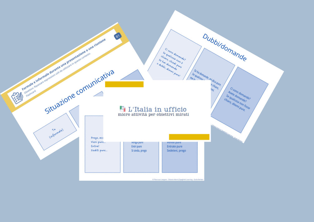 questa è una raccolta di flashcard per praticare frasi formali e informali in situazioni che vadano al di là degli scambi iniziali (es. Come si chiama? Piacere di conoscerla!).